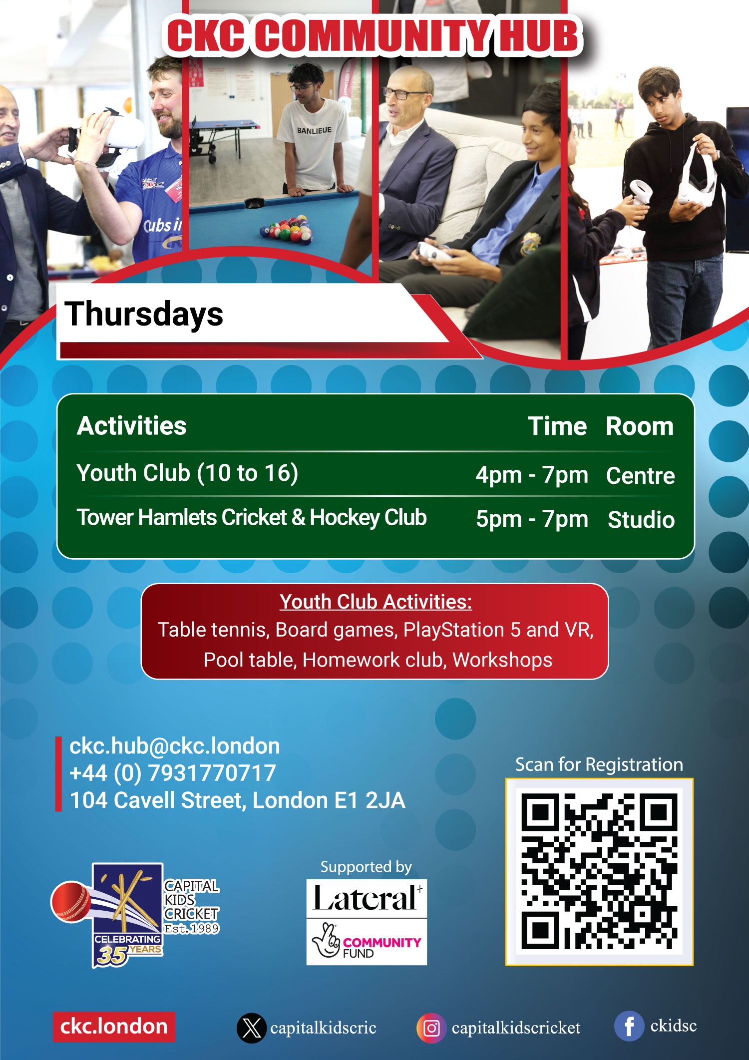 Capital Kids Cricket is establishing a community hub in Tower Hamlets to offer sporting opportunities, life skills workshops, and indoor activities for both youth and adults, male and female.